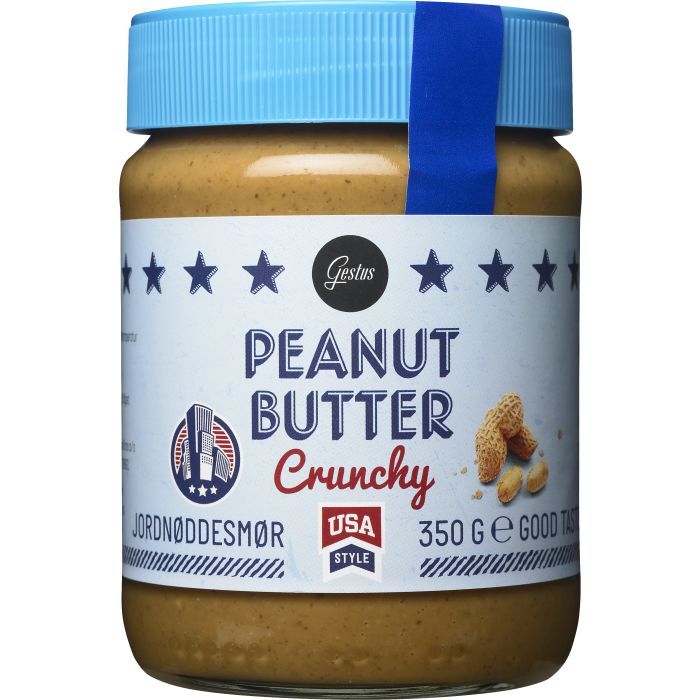 GESTUS Erdnussbutter Crunchy 350 G – köstliche Erdnussbutter mit knusprigen Erdnussstückchen. Perfekt als Brotaufstrich oder zum Backen.