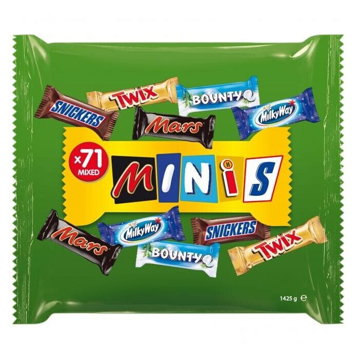 Enthält: Mars, Snickers, Twix, Milky Way und Bounty Minis.